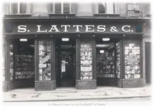 Simone Lattes (Torino 1862–1925), già impiegato presso la libreria Casanova (ora Luxemburg), inaugura nel 1893, in via Garibaldi 3, l’omonima libreria, oggi scomparsa.
